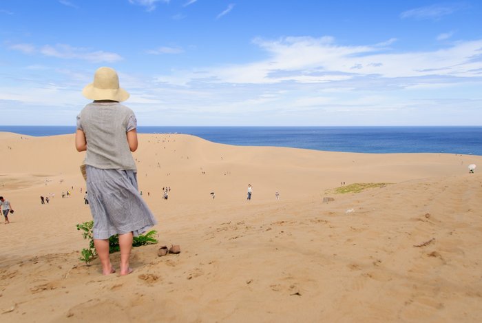Các cồn cát ở Tottori nằm ngay sát biển Nhật Bản và sở hữu một trong những bãi biển rộng nhất “đất nước mặt trời mọc”. Khu vực này phổ biến với du lịch theo nhóm gia, đến để tận hưởng vẻ đẹp của biển và ánh nắng mặt trời. Những túp lều bãi biển mở cửa vào mùa hè và các cơ sở công cộng bao gồm phòng tắm, phòng thay, toilet, trong khi các điểm tham quan ngoài trời khác tại cồn cát có các hoạt động cưỡi lạc đà, dù lượn và trượt cát.